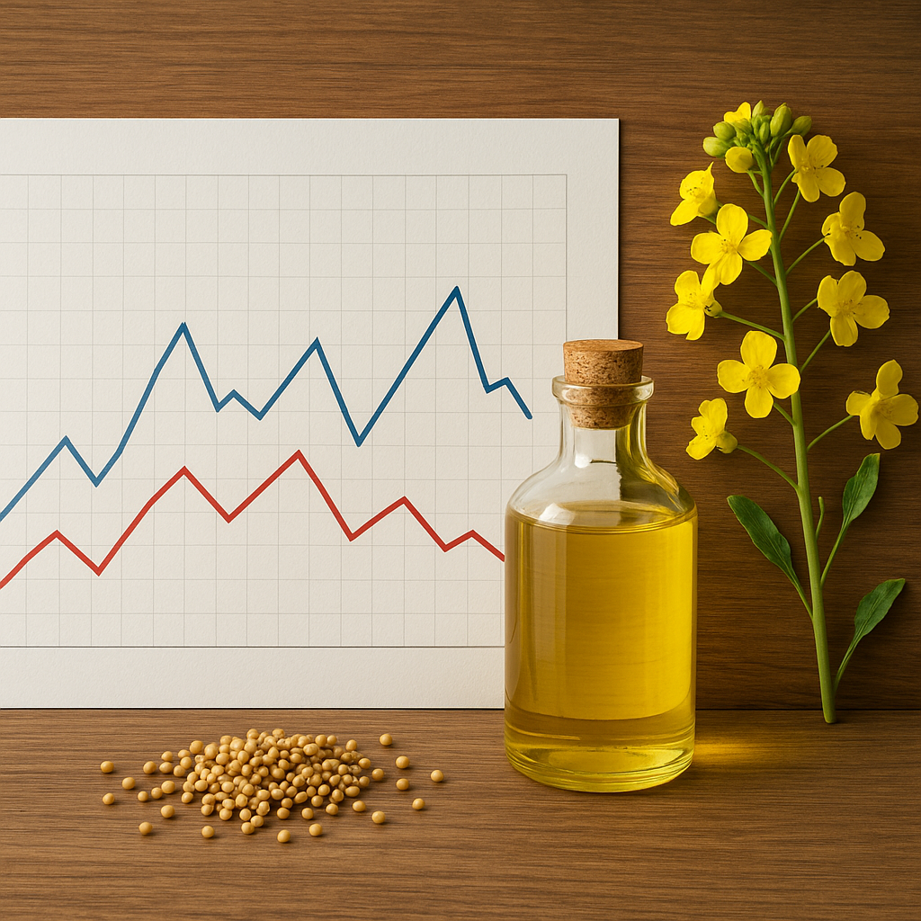 Les flux commerciaux d’exportations influencent fortement les cours locaux. La concurrence avec d’autres huiles végétales (huile de soja, huile de palme) met le colza en relation directe avec la dynamique globale des oléagineux. Des perturbations logistiques ou des variations de la demande mondiale peuvent modifier rapidement les perspectives de prix, d’où l’importance d’une lecture internationale pour tout acteur national.