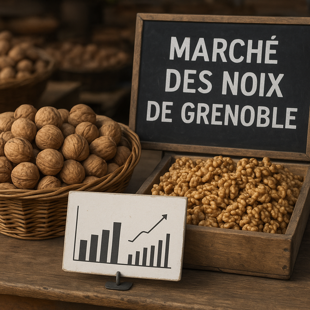 La noix de Grenoble bénéficie d’une réputation liée à son terroir, sa sélection variétale et son savoir-faire de transformation. Protégée par des appellations qui garantissent une traçabilité et une qualité reconnues, elle s’insère dans un marché où l’identité géographique constitue un atout commercial majeur. Le commerce des noix combine échanges nationaux, circuits locaux directs et exportation, chaque segment répondant à des attentes différentes en matière de calibre, de teneur en huile et de goût.